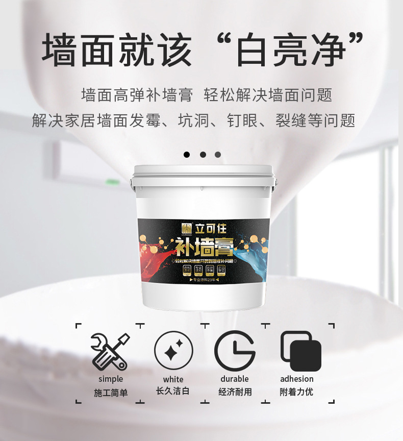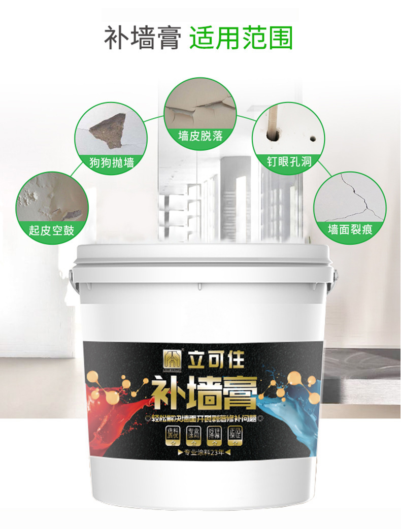 立可住补墙膏 墙面修补膏漆 白色环保墙面漏漆 修补膏适用范围墙体坑洼 破损 裂缝 起皮 钉眼空洞等修补 具有防霉防潮等特点 现货供应 欢迎订购
