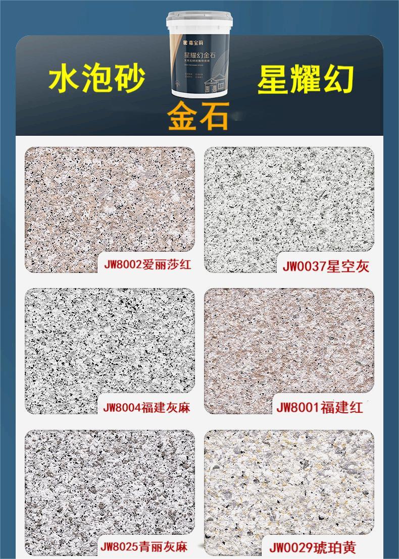 嘉宝莉天然真石漆 外墙水包水 水包砂 大理石 多彩仿石艺术涂料 水包砂与真石漆在生产原材料不同 液岩漆采用天然石粉 硅丙合成树脂乳液等组成 具有在干结固化后坚硬牢固 涂膜表面陶瓷效应 使用寿命长等特点