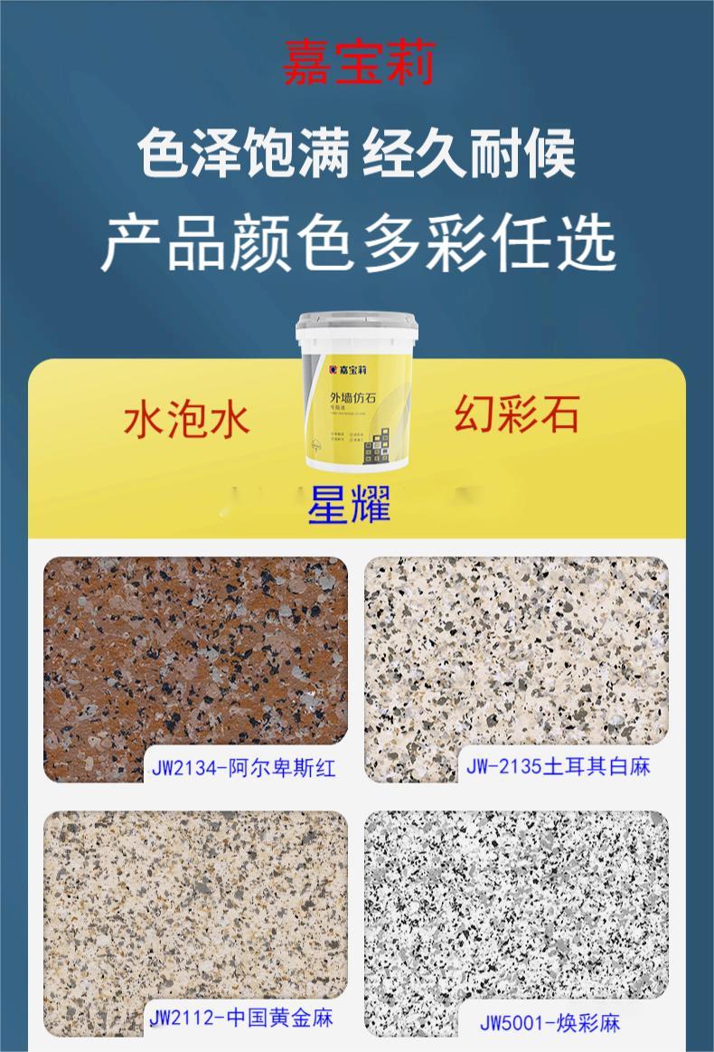 嘉宝莉天然真石漆 : | 外墙水包水 水包砂 多彩仿石艺术涂料 | 供货地址 : | 广东 |