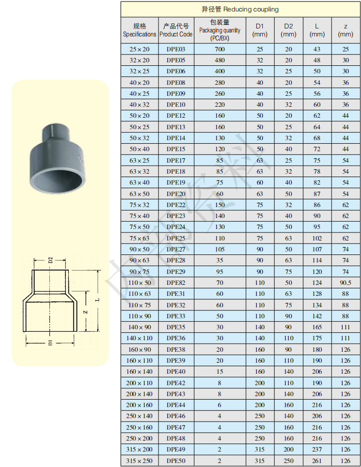 UPVC给水90度变径 异径管 重庆现货供应 上水管大小头 异径直接 异径管