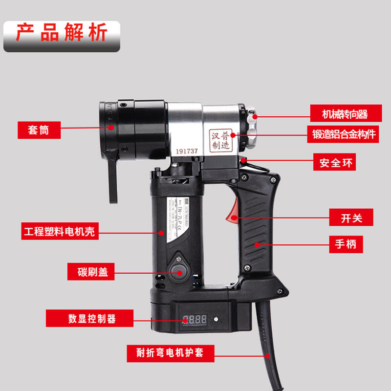 汉普电动扭矩扳手Y系列TN-7LP 紧凑的行星齿轮结构,体积小,扭矩/重量比大。 作业时,不要触摸反力臂,以防事故的发生,操作电动扳手时,应当一气呵成,禁止反复拧紧,否则会使螺栓受力增大,对其造成质量隐患。电动扭矩扳手需要变换机械转向器方向时,需等电机停止再进行反向操作。无冲击连续旋转,到达预设扭矩值自动停止作业。