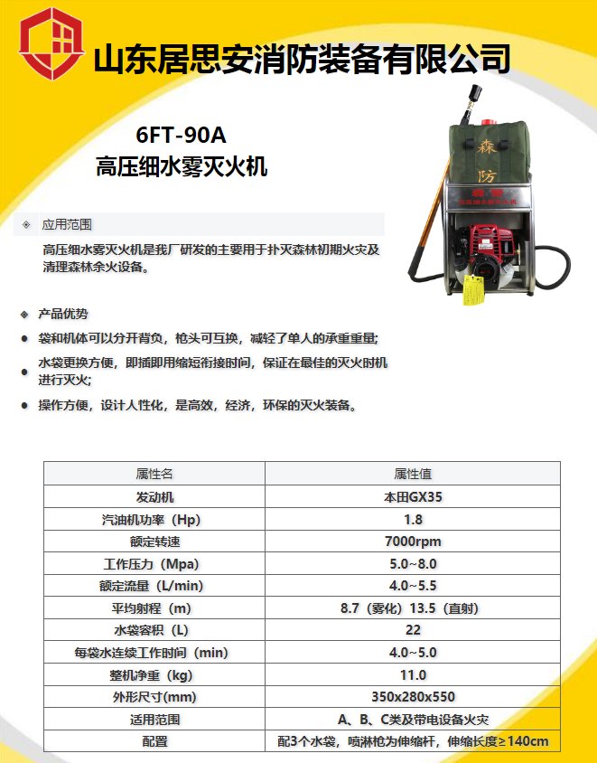 居思安供应灭火装备6FT-90A高压细水雾灭火机