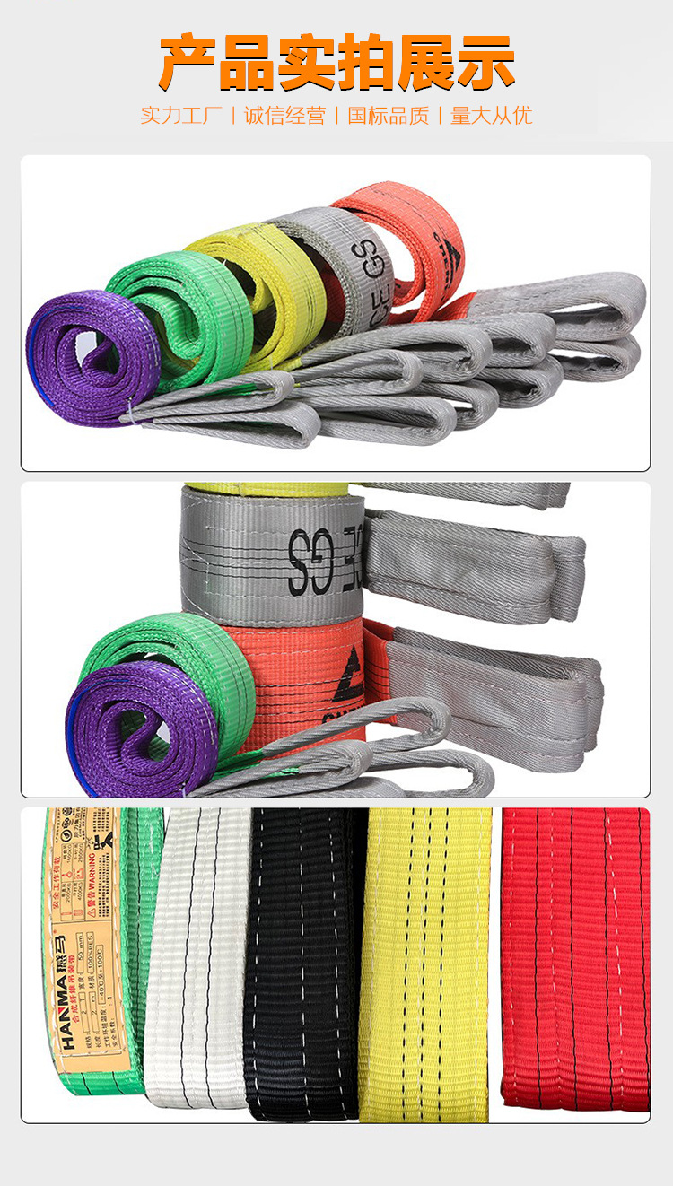 高强度起重吊带现货2T3T5T辰力彩色扁平双扣环眼工业行车吊装带