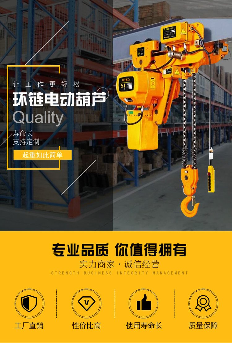 辰力3吨环链电动葫芦双链挂钩式超静音运行速度快