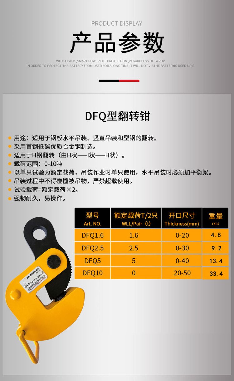DFQ型翻转钳1-10T钢板起重钳吊装用竖吊平吊