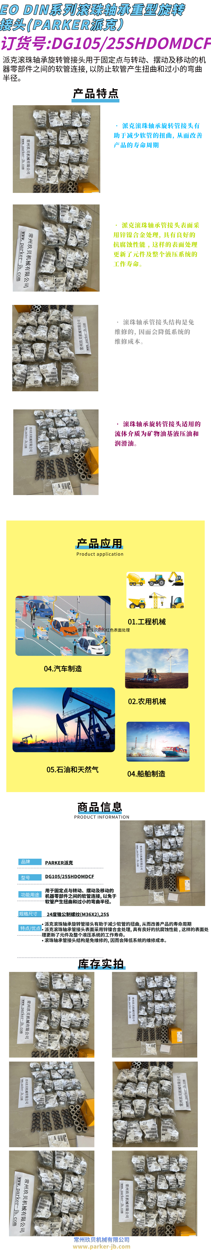 PARKER派克滚珠轴承旋转接头 DG105/25SHDOMDCF 有助于减少软管扭曲 是否进口 | 是 | ||