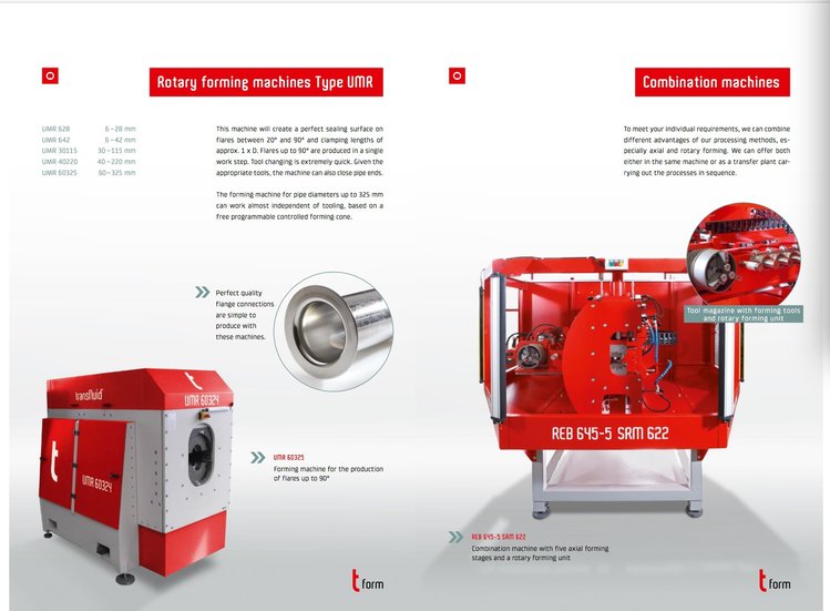 上海特马液压设备有限公司 全自动旋压扩口机 钢管扩口机 法兰翻边机 90度扩口机设备型号:TEMA Transfluid UMR系列多款机型可选,适用管径范围:?Φ6mm~28mm,6mm~42mm,6mm~115mm??设备功能描述:全自动管端旋压扩口机,适用于?Φ6mm~115mm范围的不锈钢管与普通钢管,或其它有色金属管件的37度~90度旋压扩口成型配置不同的旋压模具可成型不同的扩口角度,适用范围20度~90度的旋压扩口,由于其采用旋压方式,管端密封面光滑平整可实现液压流体管件密封应用。紧凑型结构设计,夹紧长度最小为一倍管直径,也可以配置复合夹紧模具加的管件.通过PLC面板控制,一键启动,可实现夹紧轴,进给轴,限位轴,旋压轴自动控制,一次成型,扩口成型长度,工作节拍等参数可以自由设定,ü??应用案例:ü??ORFS 90度扩口密封ü??37度/74度扩口密封ü??普通90度法兰扩口密封?可选设备规格上海特马液压设备有限公司作为德国全斯福中国市场战略合作伙伴,全面负责德国全斯福产品在中国的市场推广,技术咨询,售前与售后技术服务,自动化集成改造配套等技术服务工作。上海特马液压设备有限公司配备经过德国总部培训考核合格的机械工程师与电气工程师,可独立自主完成transfluid数控弯管机的设备的安装调试,设备交付,技术支持与相关售后服务工作。在中国市场已成功交付几十套德国全斯福数控弯管机设备以及管件自动化生产线,产品广泛应用于航空航天,装备制造,轨道交通,石油化工,汽车制造等领域。中国市场部分现有客户有,中国中车,中海油,中国航天,中国航天科工,中国航发,Roll Royce,Contitech,一汽大众等。