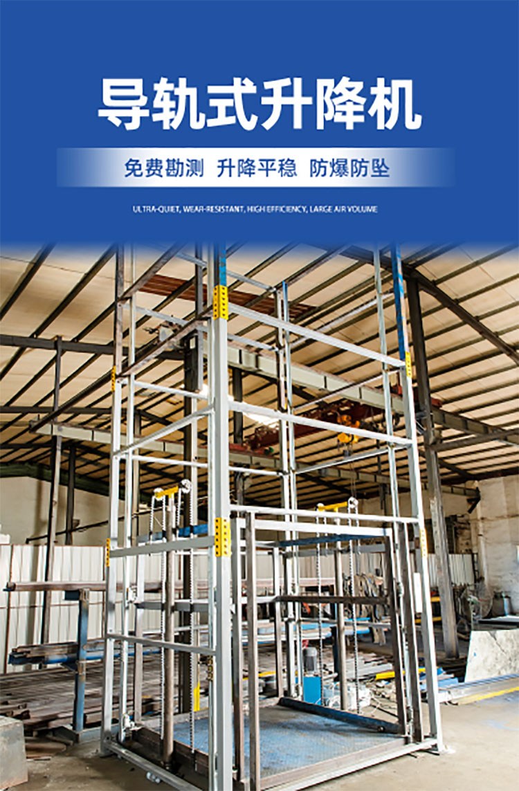 导轨升降货梯的液压系统设置防坠、上下层门互动连锁,各楼层和升降台工作台面均可设置操作按钮,实现多点控制。产品结构坚固,承载量大,升降平稳,安装维护简单方便,是经济实用的低楼层间替代电梯的理想货物输送设备。根据升降台的安装环境和使用要求,选择不同的可选配置,可取得更好的使用效果,本产品主要应用于化工、高温、高压、电厂、核工业基地、等防爆企业。
