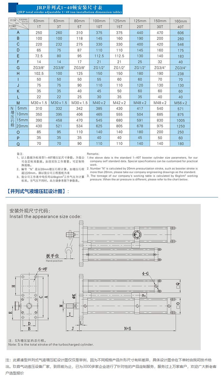 JRP并列式气液增压缸2年免费保修非标定制众多客户的选择