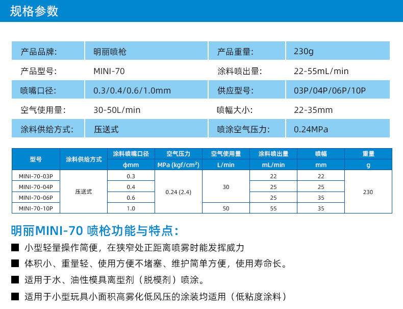 明丽MINI-70喷枪标记画线喷油小型玩具腮红胭脂上色用自动喷漆枪