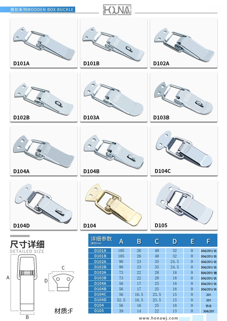 苏州华纳作为一家经营多年的箱类配件厂家,是国内一家研发与生产箱类五金配件公司,主要生产蝴蝶锁扣、搭扣、拉手、包角、木箱整套配件等等,箱类五金配件为主体的品牌。专注为客户提供箱类解决方案;不断提供配套产品。品牌有五大产品——蝴蝶箱扣、搭扣、包角、合页以及拉手。