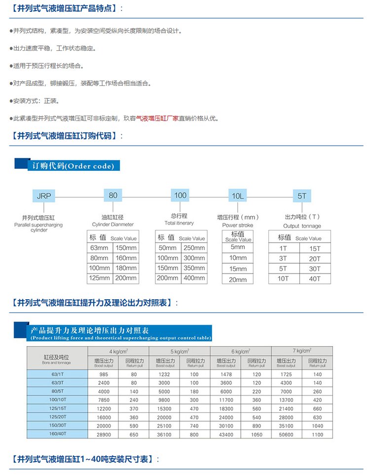 JRP并列式气液增压缸2年免费保修非标定制众多客户的选择