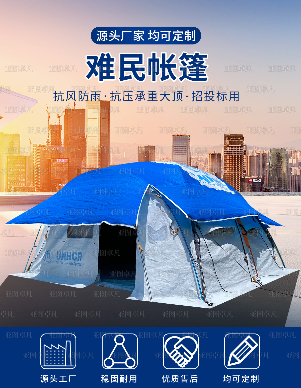 UN难民帐篷抗风防雨抗压承重大顶厂家直供亚图卓凡