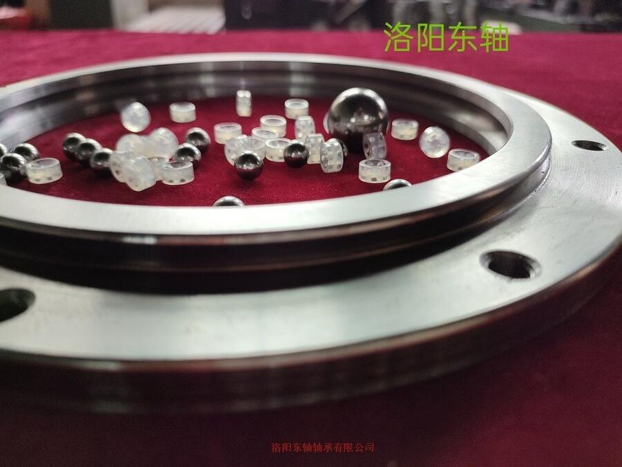 YRTS转台轴承对内部结构进行改进,增加径向保持架,减少径向滚子的数量。防止转盘轴承工作时径向滚子间互相碰撞和摩擦,且径向用尼龙保持架重量轻,使得转盘轴承的旋转灵活性更好、噪音更低;虽然轴承径向的承载有所下降。但是转盘轴承的极限转速有了很多提高,可以达到YRT转台轴承的4.5倍,同时减小了轴承的摩擦力矩,有效的延长转盘轴承的使用寿命。