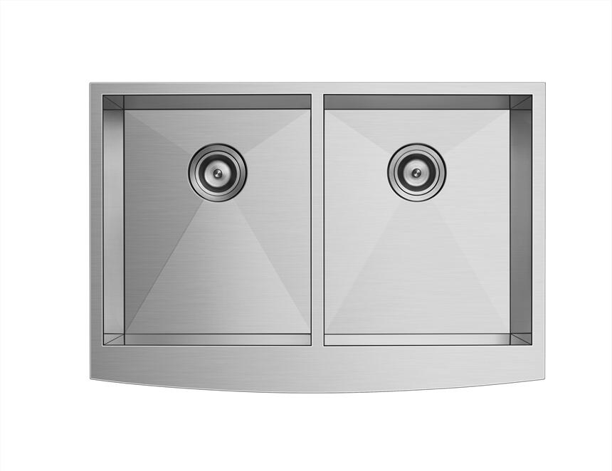 不锈钢手工厨房水槽台下裙边双槽