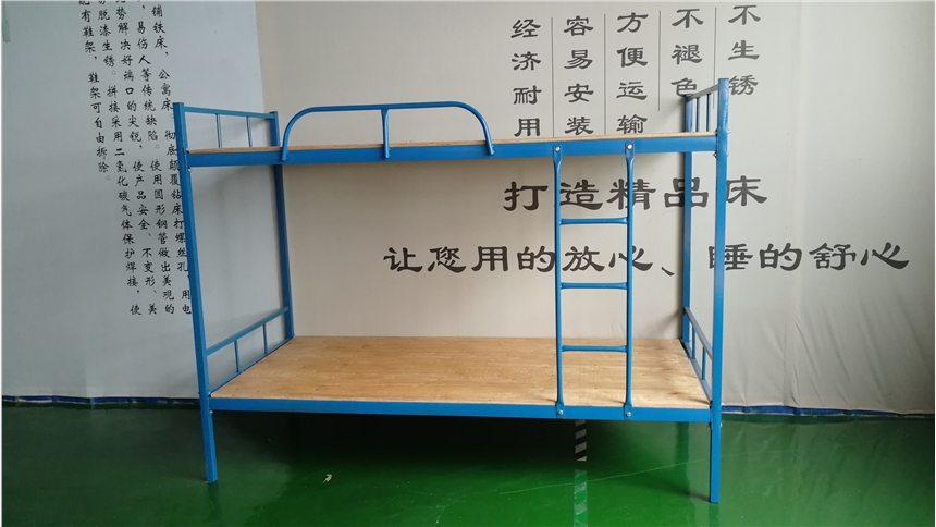 蓝色方管床,1500的高度不浪费材料,很好的节约了成本。蓝色靓丽醒目,很漂亮。床板平铺很结实,没摇晃。安心实用。