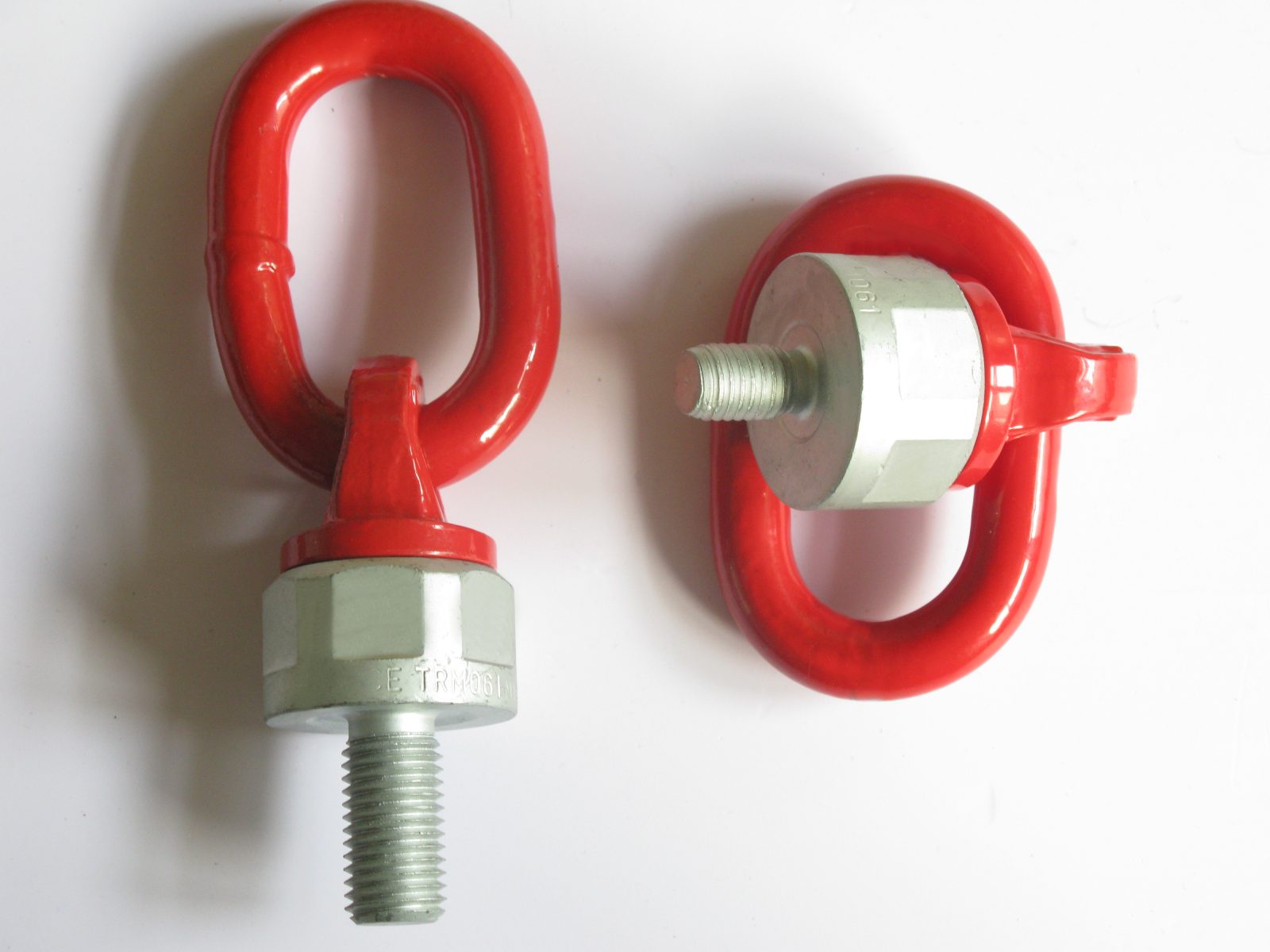 TRM061旋转吊环采用滚珠轴承设计是可以360度旋转,允许180度范围任意方向起吊。与传统的吊环螺钉相比,传统的吊环螺钉只能一个方向起吊,在有角度吊装时不可以旋转,使用传统国标吊环螺丝很容易损坏吊环,但万向旋转吊环可以改变受力角度,所以安全性更有保障。现在随着技术的不断发展,人们安全意识的提高,有些机械需要翻转使用吊环,从而现在人们基本淘汰了吊环螺钉改用了这种新型万向旋转吊环。