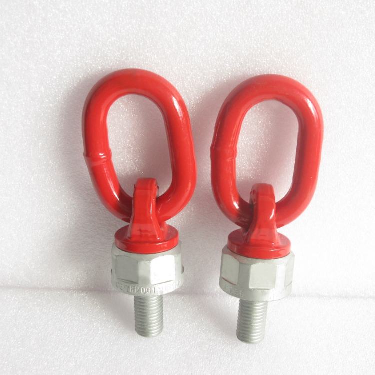 旋转吊环、万向吊环可360度旋转,允许180度范围任意方向起吊,螺栓体标注有许用工作载荷。旋转吊环采用合金钢材质,每一个细节都经过精心的设计和打造,也经过了测试和质量检测热处理、机械加工,旋转吊环的使用环境对吊环的寿命也有重要影响,因此旋转吊环表面经过特殊处理。