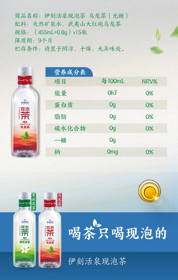 伊利伊刻活泉现泡乌龙茶\/茉莉花茶455ml重庆单位福利清凉饮料批发
