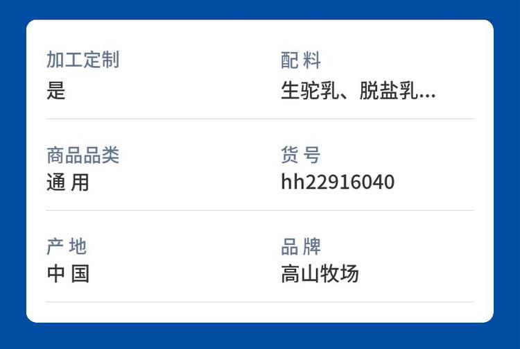 配料 | 生驼乳、脱盐乳清粉、叶黄素、益生菌 | ||