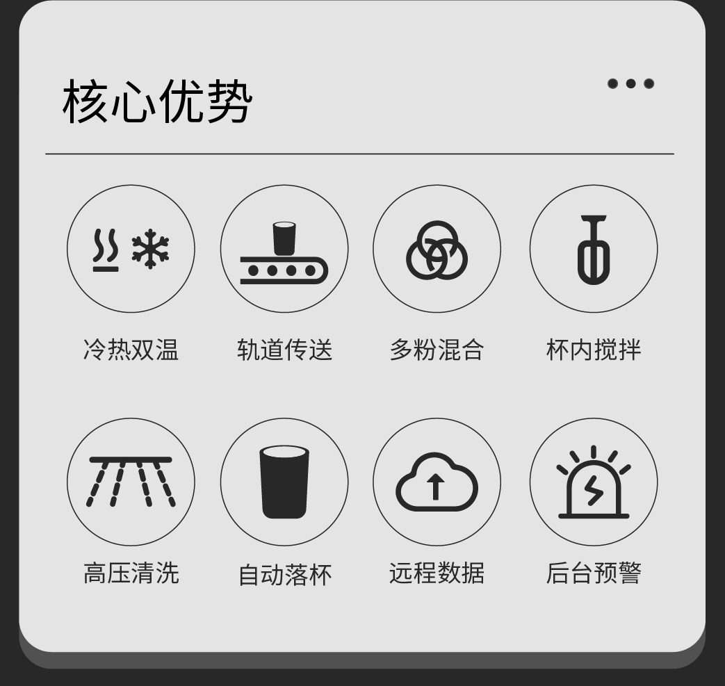 操作方式 | 自助点单 扫码支付 自动落杯出饮 | ||