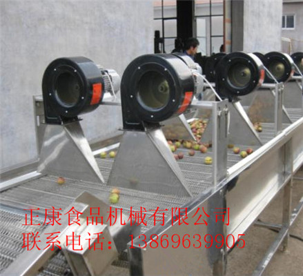 风干机在食品、饮料、制药等行业中,一些成品在包装完毕后需要进行水浴杀菌,经杀菌的成品包装表面附着大量水滴,在装箱前需要除干包装表面的水份,被除水包装产品(袋装、盒装、瓶装)连续放在可调速度快慢的不锈钢网带上,按序进入气罩内,本机产生的高压、低温的气流从喷嘴上下喷射而出,迫使水滴瞬间气化,从而达到包装产品除水、除油渍、水垢等效果。该系列设备连续运转,被除水包装成品源源不断进入下一装箱生产线。