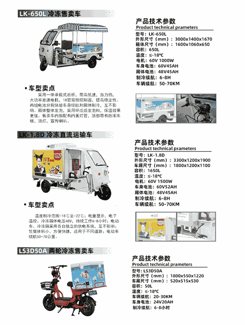 • 规格:三轮冷冻直流运输车