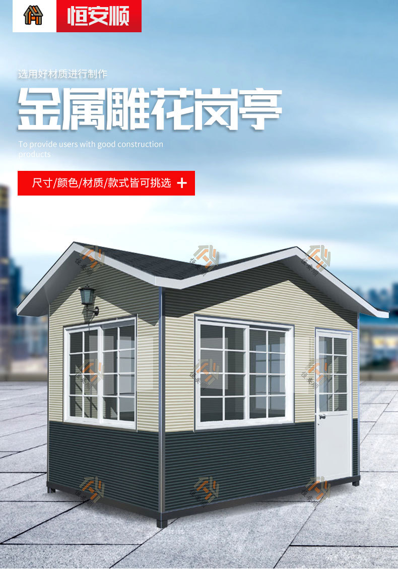 金属雕花板保安亭岗亭厂家移动成品门卫值班室设备房生产厂家