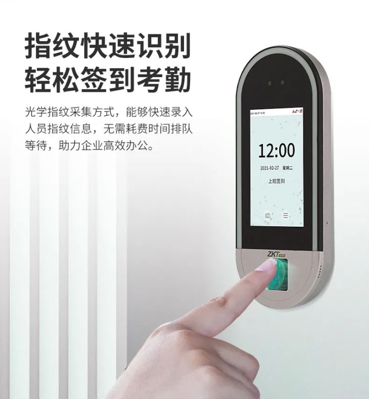 xFace630是中控博业新推出的一款可见光考勤门禁终端,集可见光面部、指纹识别方式于一体,实现快速精准识别,更加安全高效。产品配置5英寸触摸屏、200万高清双目摄像头,画面清晰无拖影,体验更舒适;支持TCP/IP、WiFi(选配)通讯方式,实现数据实时连接;标配Wiegand in/out,兼具门磁、反潜、报警等多种门禁功能,适用于企业考勤、社区门禁等场景,用心守护您的工作生活安全。