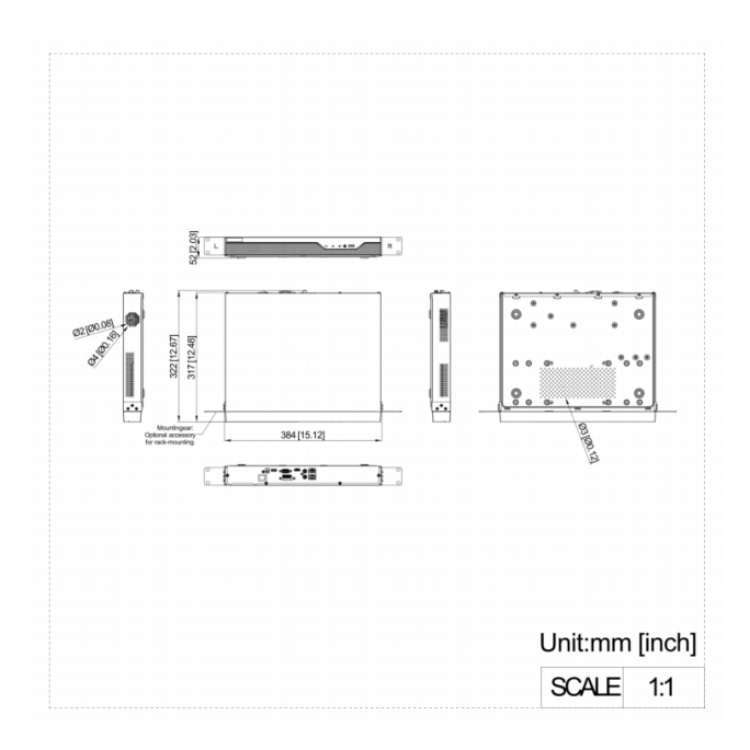 机箱尺寸 384mm(宽)×315mm(深)×52mm(高)