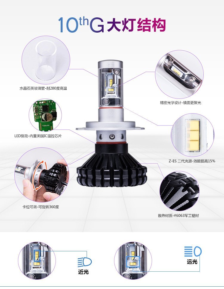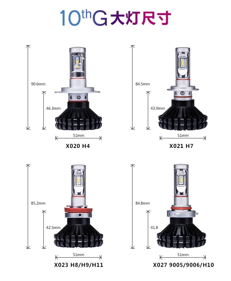 跨境专供前大灯无损安装通用远近光LED大灯汽车灯泡X020H480W