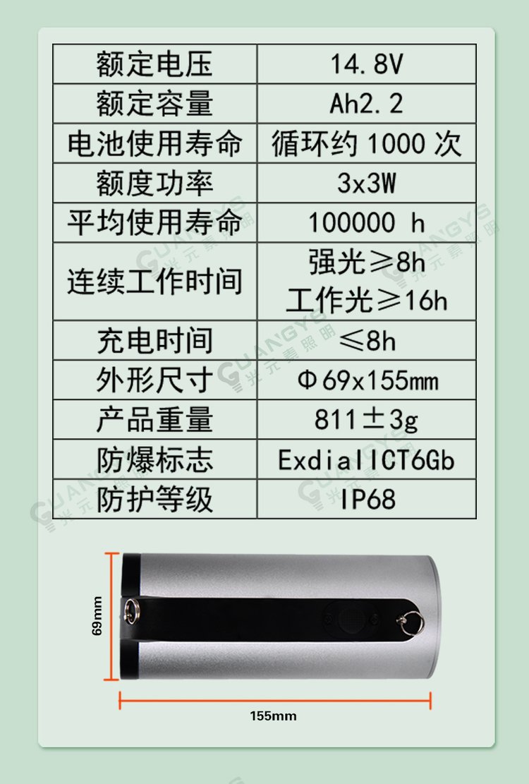 强光工作时间 | 8h | ||
