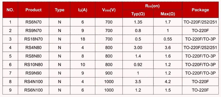 產品優勢:高速開關,高壓低內阻