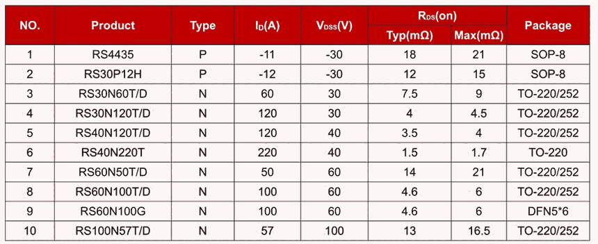 產品優勢:開關速度快,輸入阻抗高,控制功率小,導通電壓低,通態電流大,損耗小,增強型抗雪崩能量