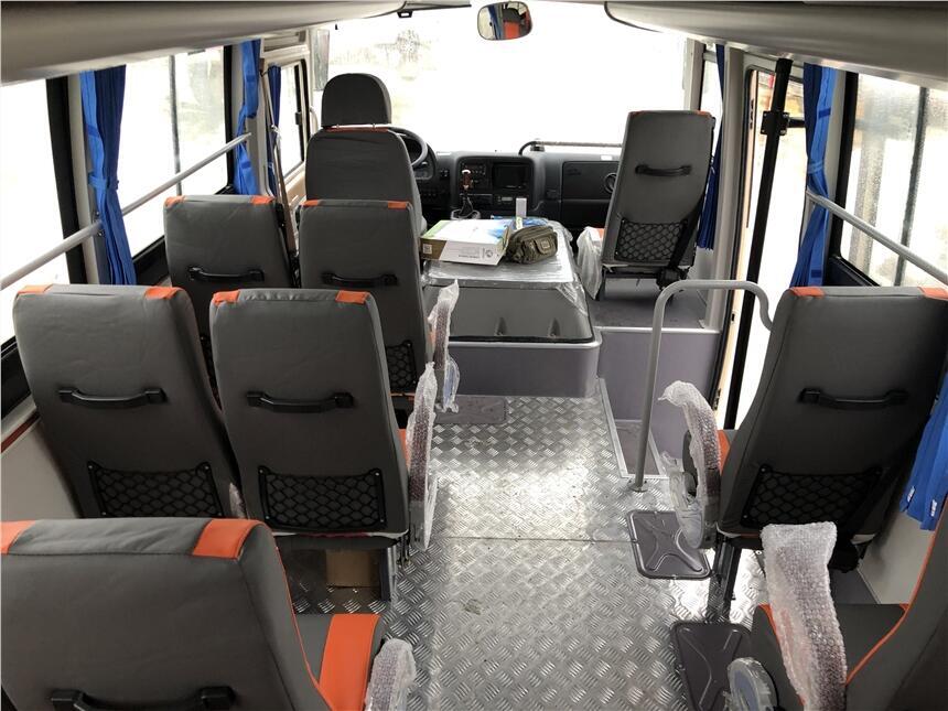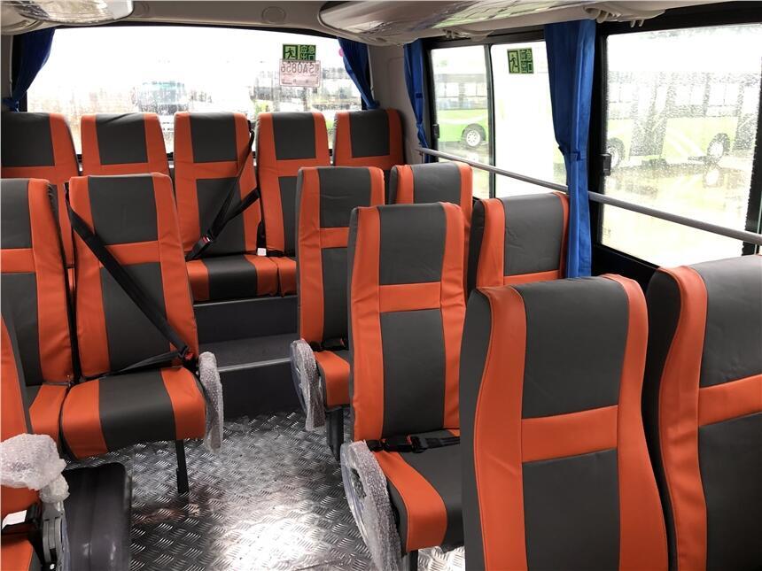 东风客车19座客车车辆型号DFA6600K5A【营运版标准配置】方向助力、离合助力、断气刹车、限速器、5档变数器、德纳车桥、前盘后盘制动器、车身稳定系统ESC(含ABS),干燥器、自动调整臂、发动机预热、胎压监测系统、制动衬片摩擦报警,发动机仓自动灭火装置;普通聚氨脂油漆,海绵座椅(全车安全带)、竹地板铺革,司机风扇、遮阳帘,电子钟,MP3收音机,点烟器,影视安装埋板及预留电源线,车载视频监控系统,高位刹车灯;全粘贴内藏推拉式侧窗,应急窗自动破玻装置,1个带换气风扇天窗,导雨槽,气动折叠门,铁花纹踏板;车内左侧内行李架、右侧顶扶手;标准后行李仓、侧行李仓。