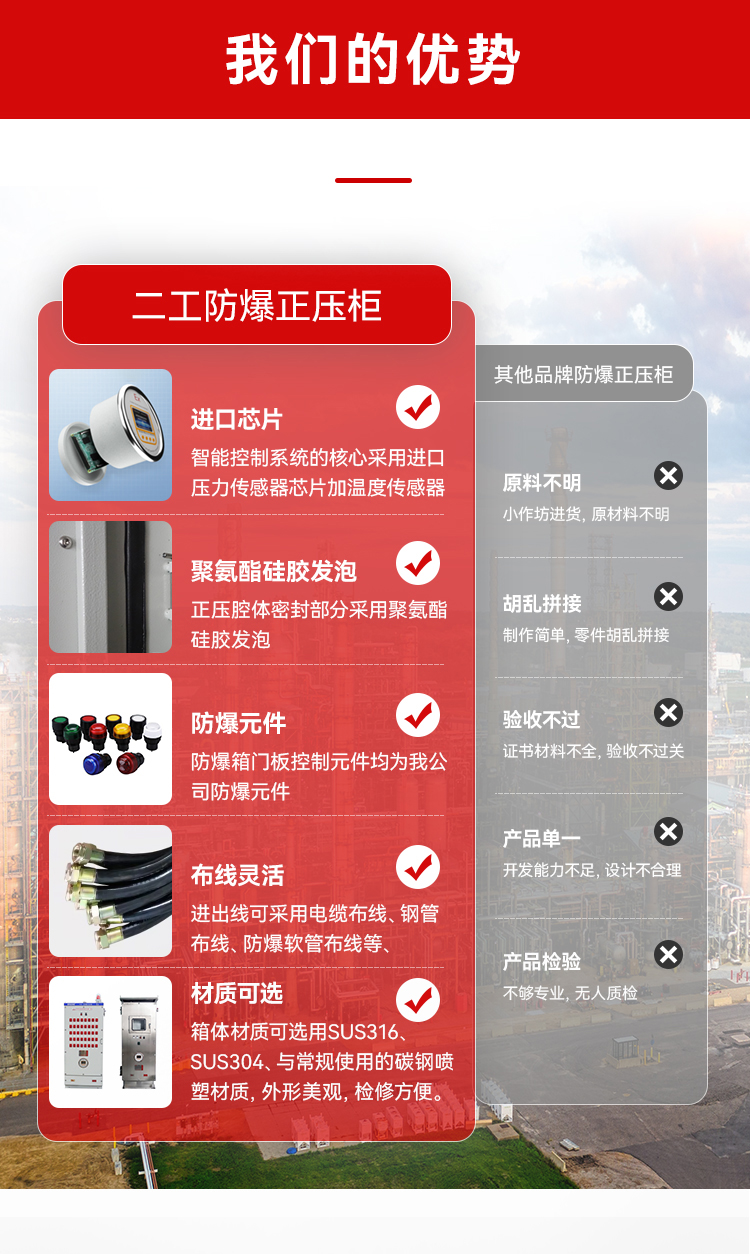 适用环境 | 石油石化、化工、酿酒、医药、油漆、纺织、印染、军工设施等爆炸性危险环境 | ||