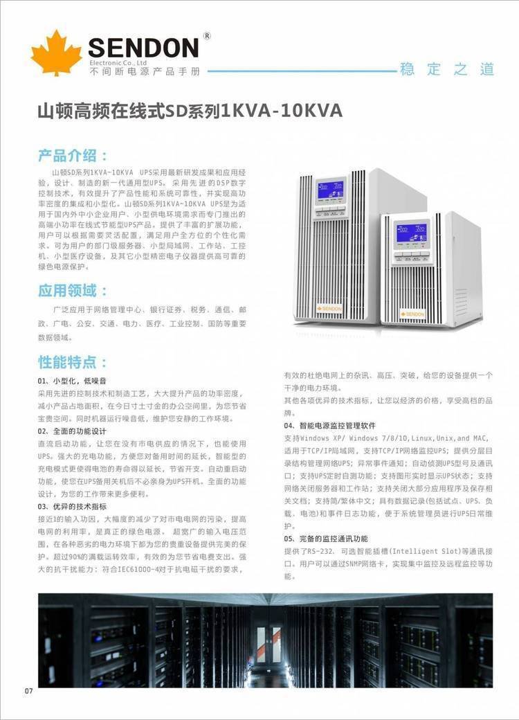 山顿UPS不间断电源SD1KNTL/1KVA在线式后背式电源 是否支持加工定制 | 是 | ||