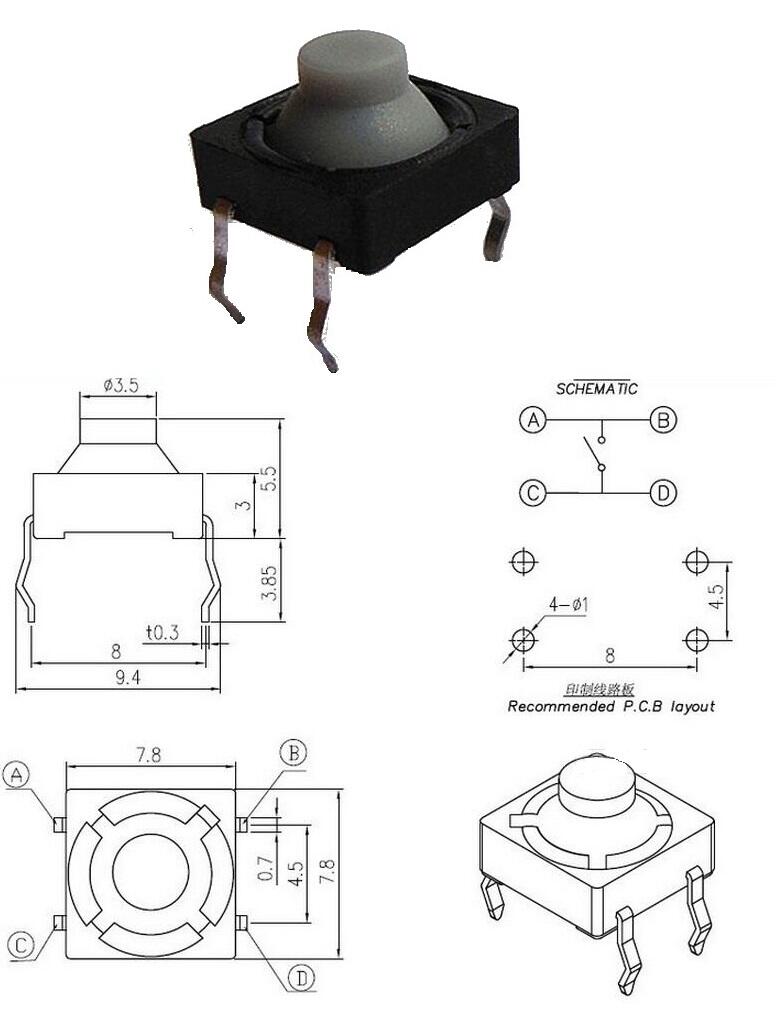 闽豪实业 8X8硅胶头 轻触开关 全国销售 厂家直供