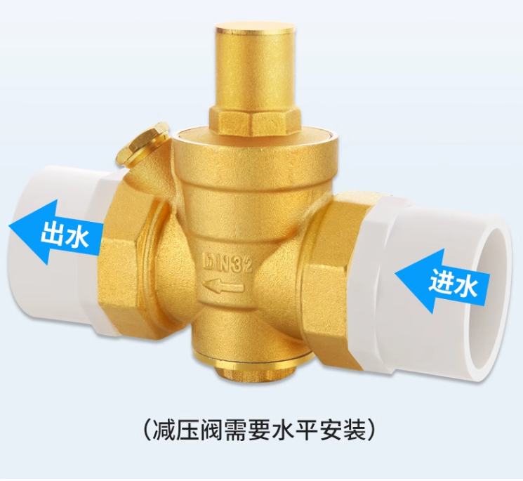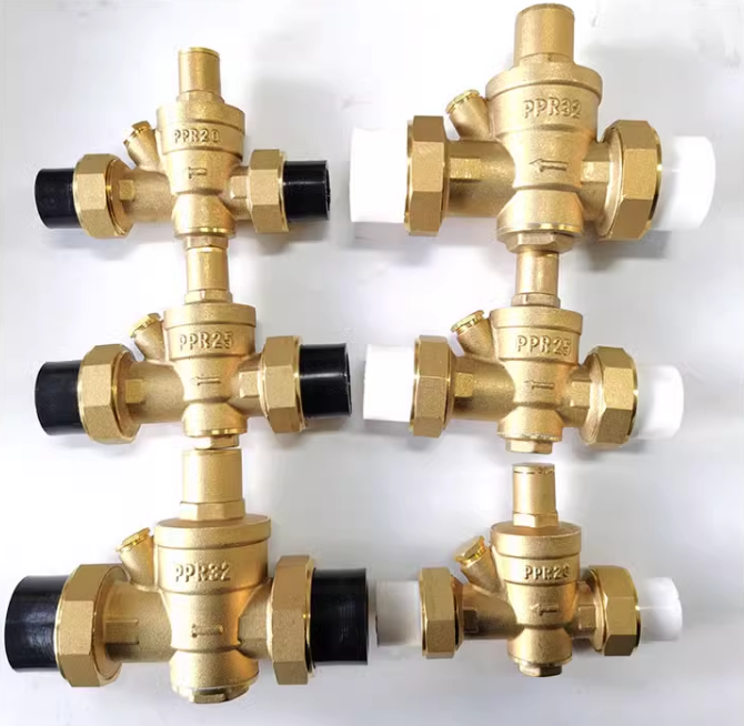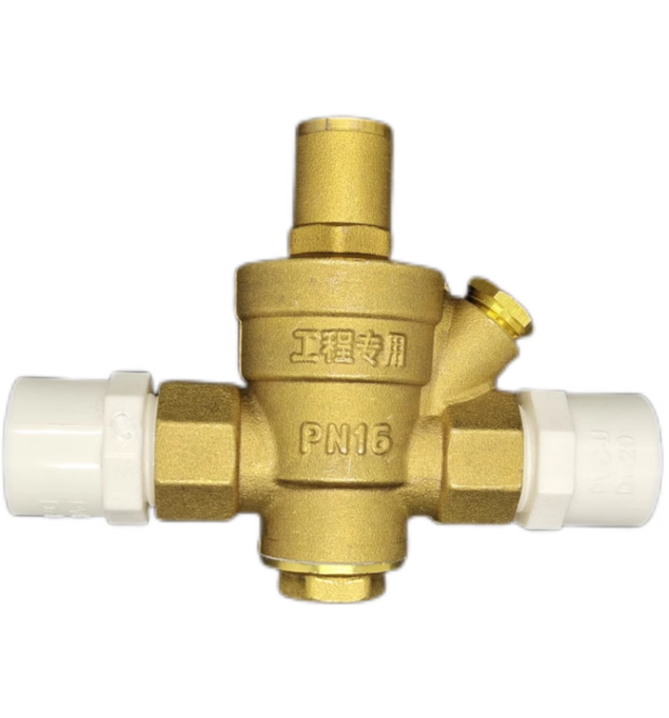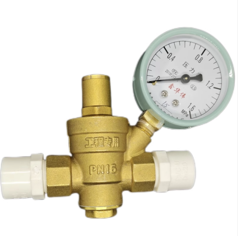 UPVC接头可调式减压阀稳压阀铜体塑料头带过滤压力表口径DN15-50