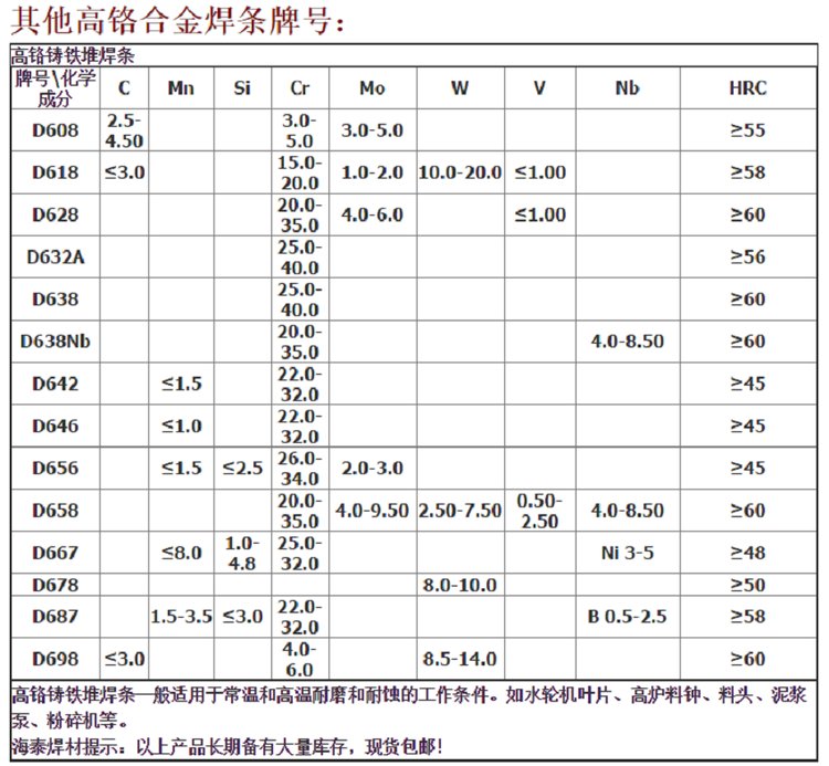 D638Nb高铬合金堆焊焊条 ?高铬合金耐磨焊条