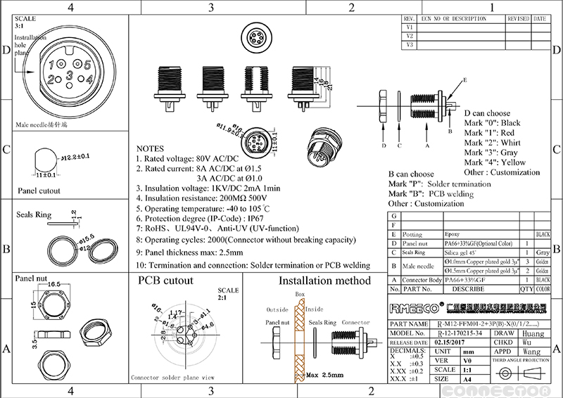 触头材质 | 优质铜实芯针 | ||
