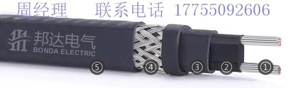 1、自限温聚合发热体包裹在两根1.2mm2的平行母线上。 、