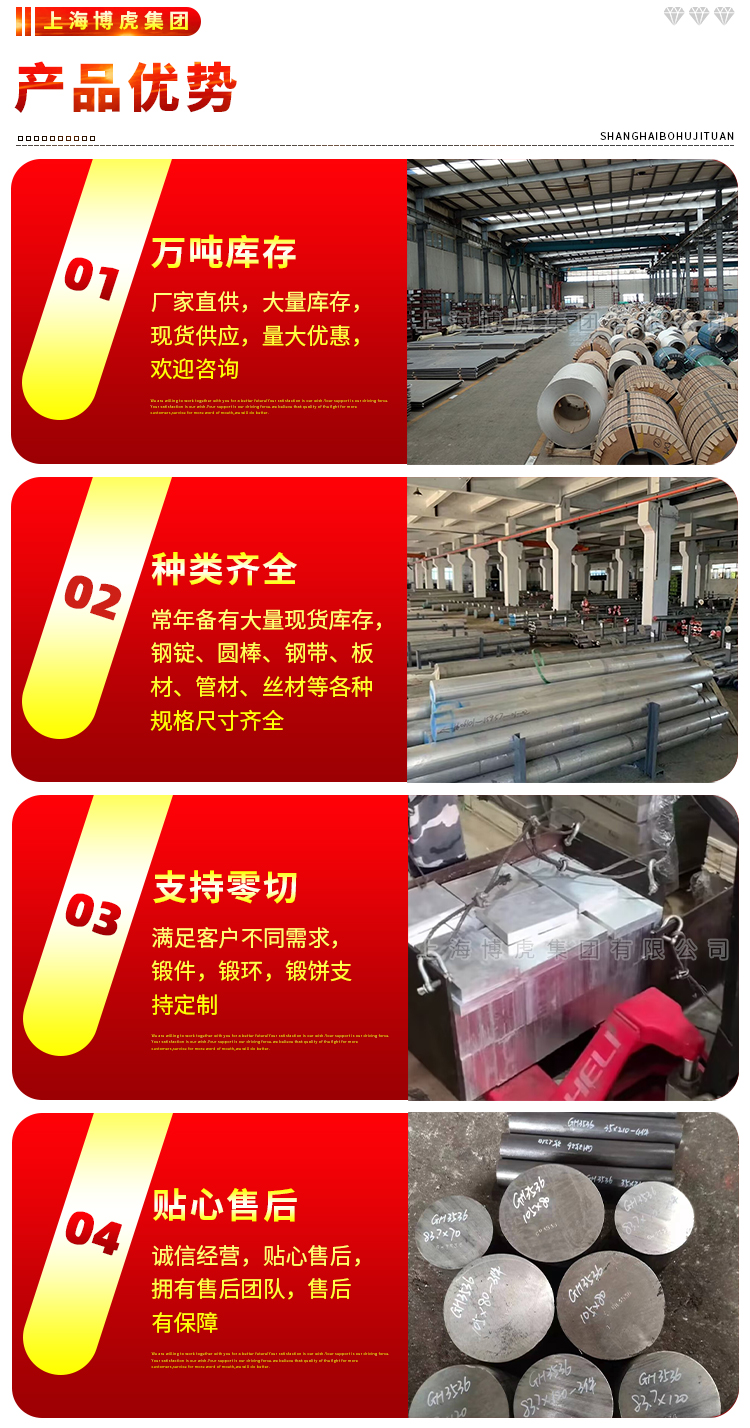 产品种类 | 锻件、板、棒、管、带、丝...... | ||