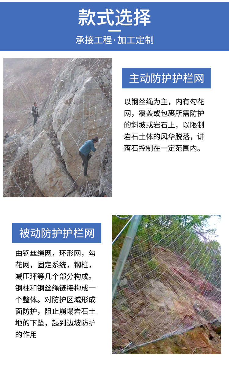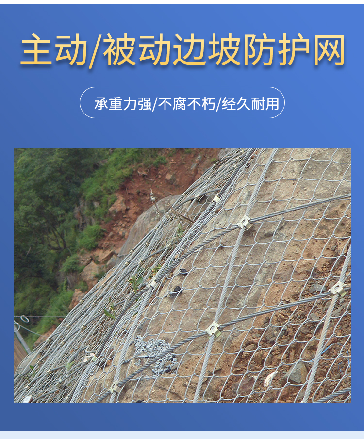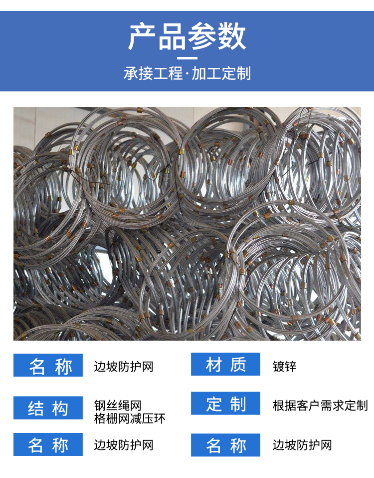 配置 | 钢丝绳网、勾花网、支撑绳、缝合绳、锚杆等 | ||
