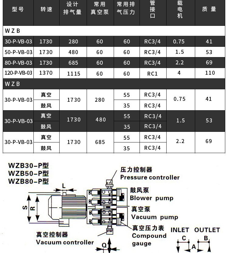 最大出口压力数值 | -60kPa | ||