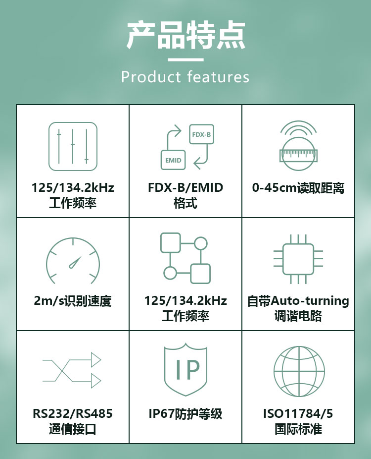 协议标准 | ISO11784/5 | ||