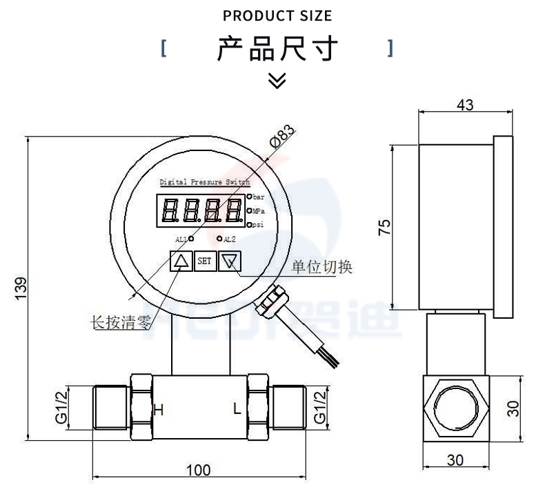 控制范围:-0.1~100MPa