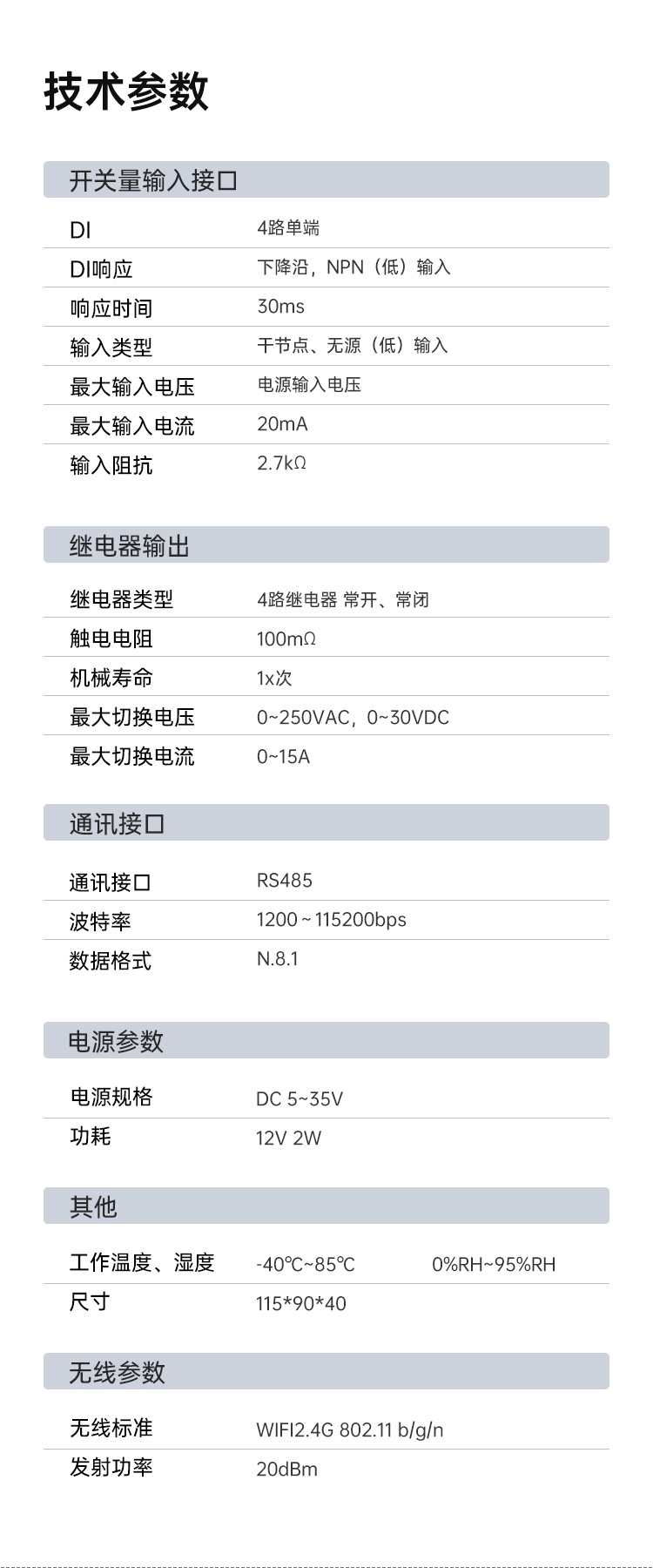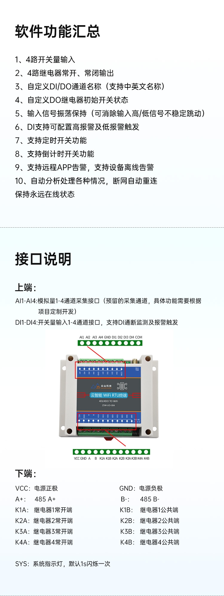 • 规格:ZSW-I/O-004