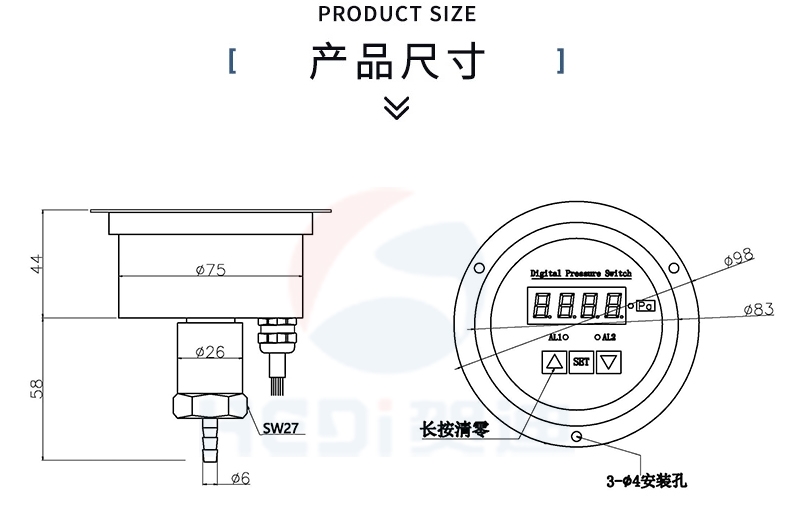 广东工厂贺迪智能控制器HDK104轴向型智能压力控制器两路继电器输出220V 3A