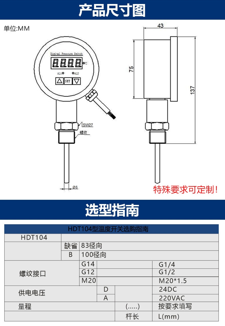 贺迪HDT104T智能数显温度控制器耐腐蚀温度变送器4-20mA数字温度开关